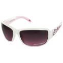 Lunettes de soleil pour femme Skechers, fabriqué par Guess / Référence fabricant : SK5004 /Référence couleur fabricant : NV33F/ Type de verres : verres anti-UV A et B de catégorie 3 / Montures en acétate de cellulose (fibre synthétique) de couleur noir et violet/ Lunettes de soleil Livrées avec étui souple Skechers et un étui souple Guess