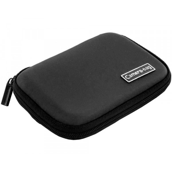 Etui rigide de protection / Housse / Sacoche pour appareil photo ou GPS ou téléphone, en matière synthétique, avec bandoulière détachable fournie, fermeture éclair - Couleur extérieure : Noire - Couleur doublure intérieure : Noire - Dimensions intérieures approximatives (utile): L=10.5cm / P=6.5cm / H=1.2cm - Dimensions extérieures approximatives L=12cm / P=7.5cm / H=2cm