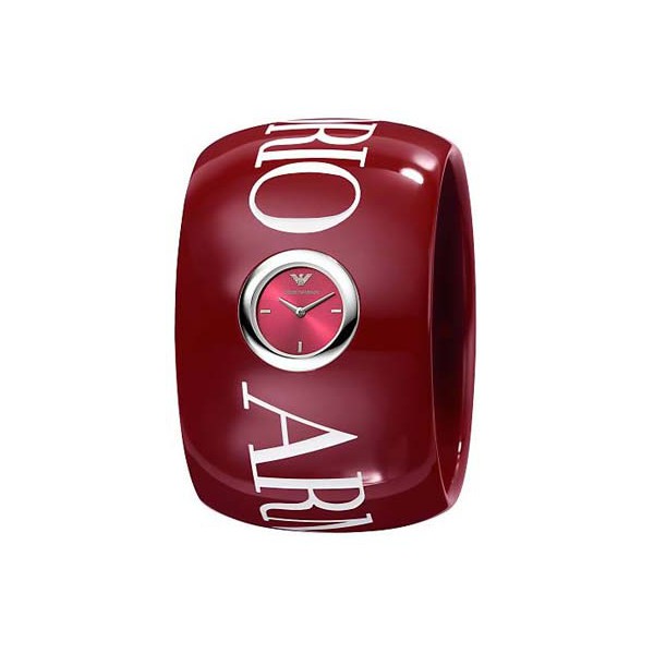 Montre Emporio Armani pour femme - caractéristiques : cadran à aiguilles, bracelet en résine, boitier en acier